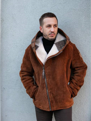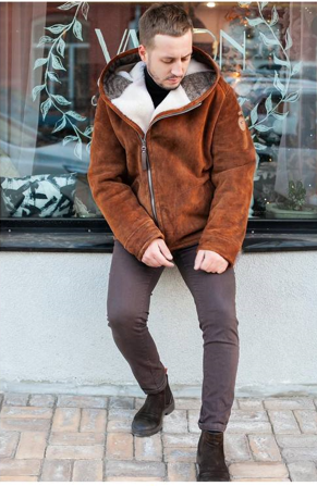 Яркая и теплая дублёнка современного дизайна, выполненная в актуальном рыжем цвете с контрастной серо-белой отделкой на капюшоне. Натуральный мех обеспечивает отличную теплоизоляцию и защиту от ветра. Подойдет мужчинам, предпочитающим свободный стиль и сочетание удобной обуви, джинс и элементов спортивной одежды.
